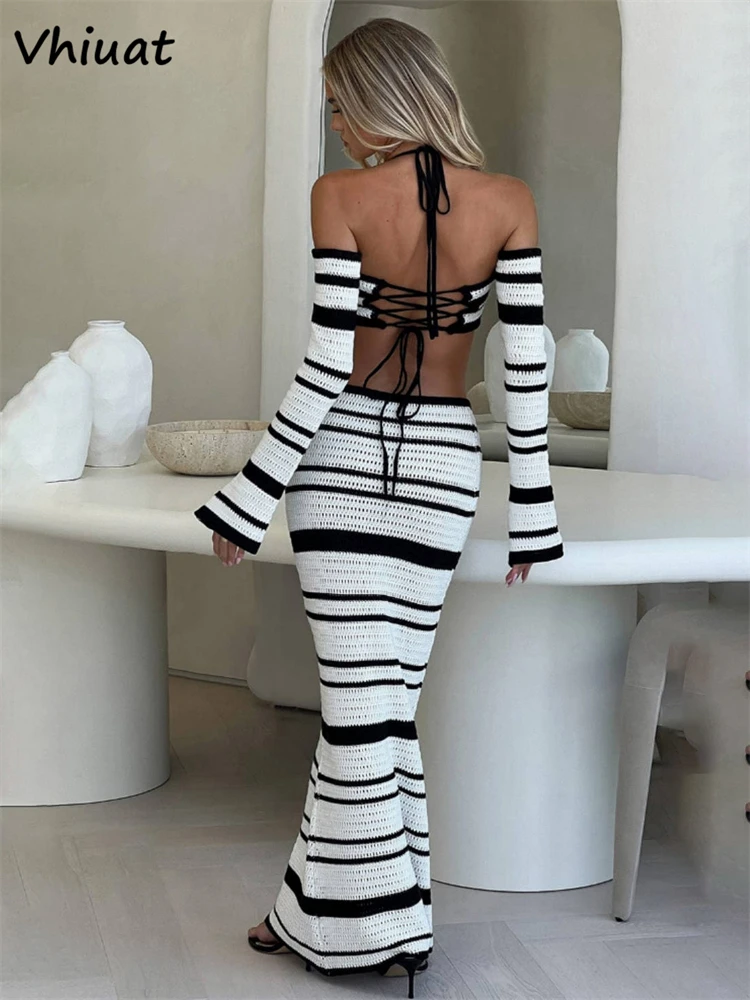 Ensemble 2 pièces à manches longues, jupe longue, tricoté -160925/2035