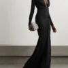 Robe longue en dentelle ajourée, Sexy, manches longues, noire, col rond, fendue – 110825/1127