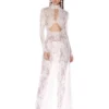 Robe plissée à simple boutonnage , Sexy, décolleté en V profond, manches longues – 120825/0931
